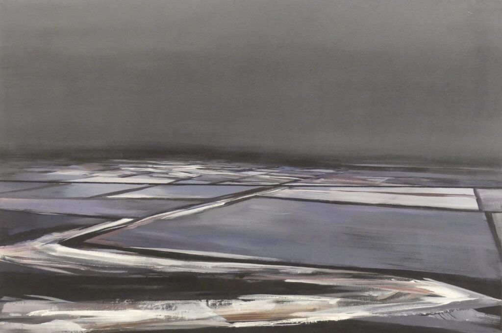 Patricia Santana construye una narrativa visual marcada por una fuerte presencia figurativa y por la reinterpretación fragmentaria del paisaje, evocando los enclaves salineros desde una perspectiva personal y contemporánea. Su obra transforma el territorio en experiencia estética y emocional, integrando tradición y mirada actual.