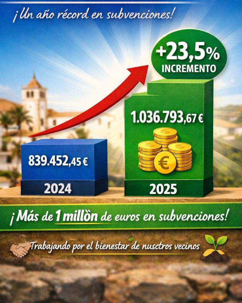 Esta cifra representa un incremento del 23,5 % con respecto a 2024, año en el que el importe total de subvenciones ascendió a 839.452,45 € .