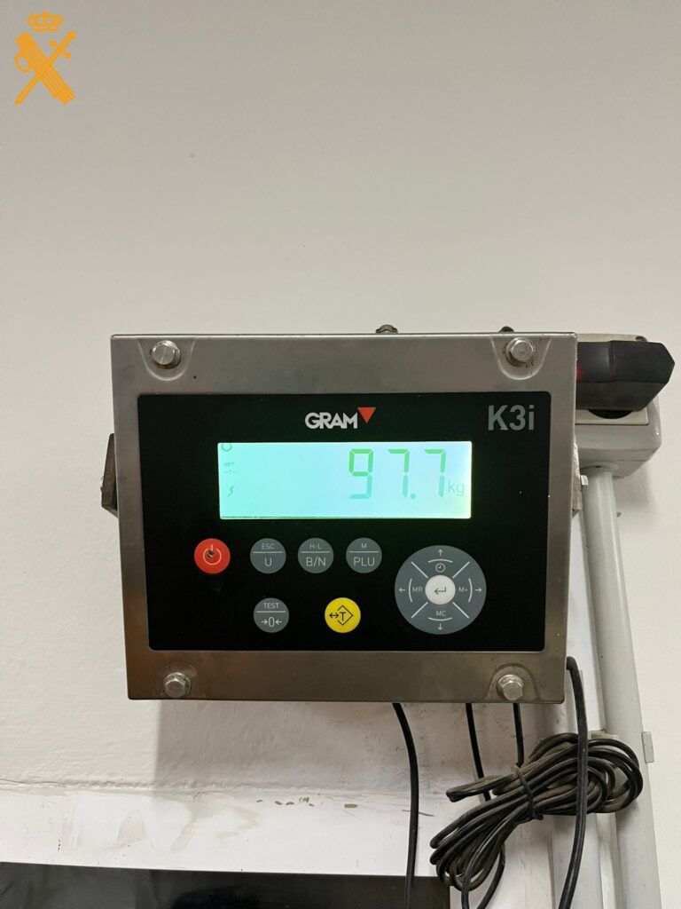 Posteriormente, se procedió al pesaje oficial de la sustancia intervenida, que arrojó un total de 97,7 kilogramos.