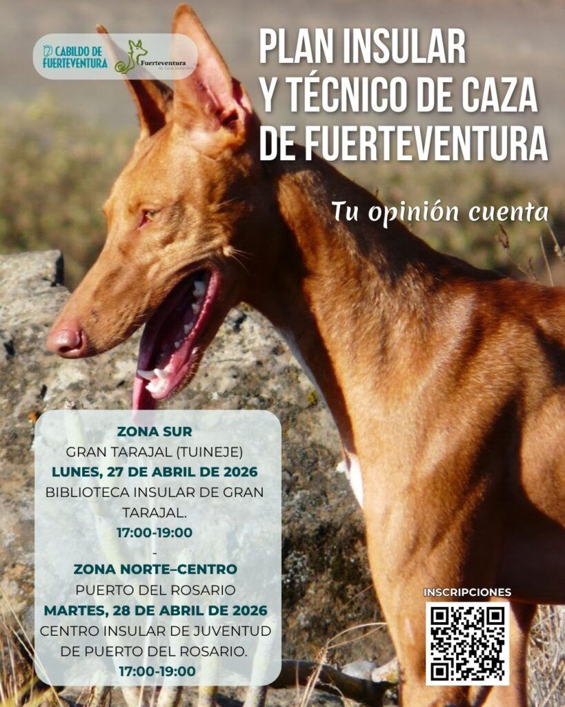 Para ello, se han programado dos sesiones presenciales que tendrán lugar el próximo 27 de abril en la Biblioteca de Gran Tarajal y el 28 de abril en el Centro Insular de Juventud de Puerto del Rosario, ambas a partir de las 17:00 horas. Estos encuentros están dirigidos a cazadores, sociedades, federaciones, colectivos vinculados al sector y ciudadanía en general.