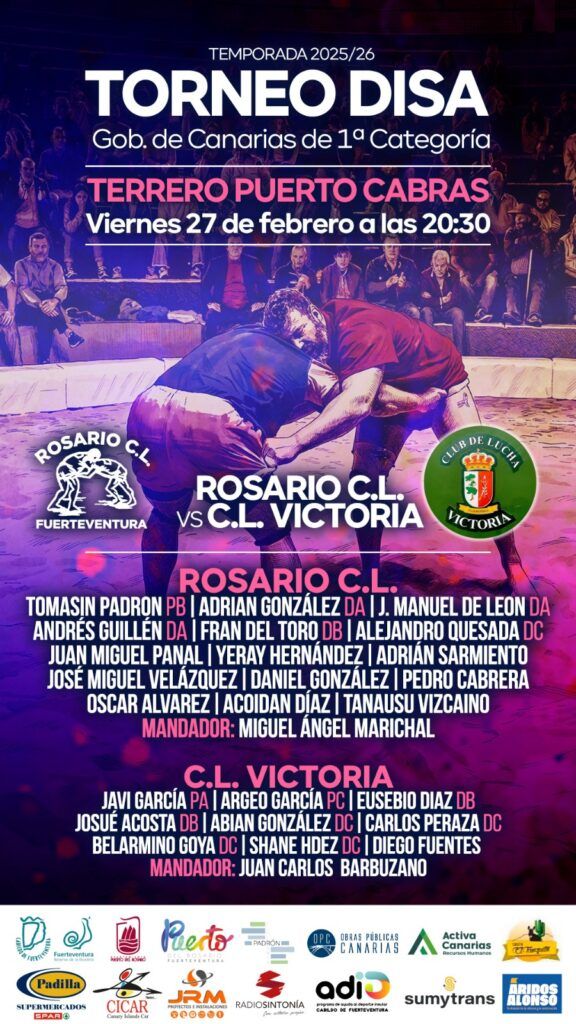El Terrero Puerto Cabras será escenario este viernes de una luchada de alto nivel correspondiente al Torneo DISA Gobierno de Canarias de Primera Categoría, en la que el Rosario C.L. recibirá al siempre competitivo C.L. Victoria.
