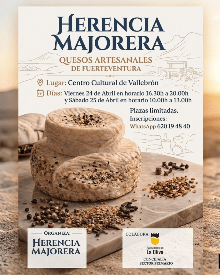 El Ayuntamiento de La Oliva, a través de la Concejalía de Sector Primario que dirige Rubén González, impulsa el proyecto “Herencia Majorera”, una iniciativa que busca convertir la tradición quesera de la isla en una experiencia formativa, participativa y divulgativa, reforzando la protección, difusión y valorización de la identidad del municipio.