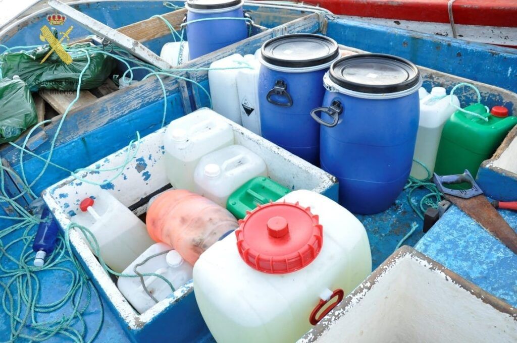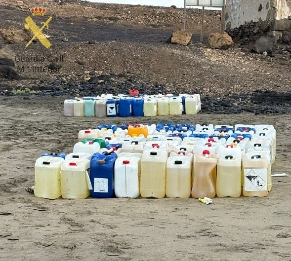 Finalmente, tras una espera sigilosa, los agentes pudieron observar cómo, ante la llegada a la costa de una embarcación, dos personas trataban de suministrarle garrafas desde tierra. En ese momento, procedieron a la detención de uno de ellos, emprendiendo la huida el otro varón junto con otro individuo en la embarcación, viéndose obligados a abandonar numerosas garrafas con combustible en la misma playa, las cuales fueron aprehendidas por los agentes.