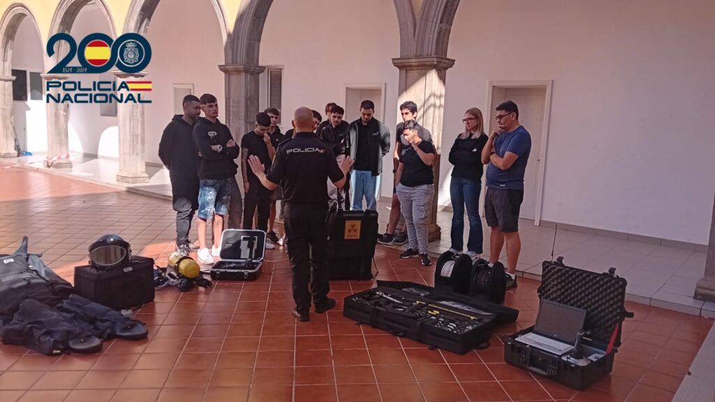 La Policía Nacional organizó e impartió una jornada formativa dirigida a 15 alumnos y 2 profesores del IES Tony Gallardo, que cursan el segundo curso del ciclo medio de Técnico de Seguridad, dentro del módulo “Vigilancia y Seguridad”.