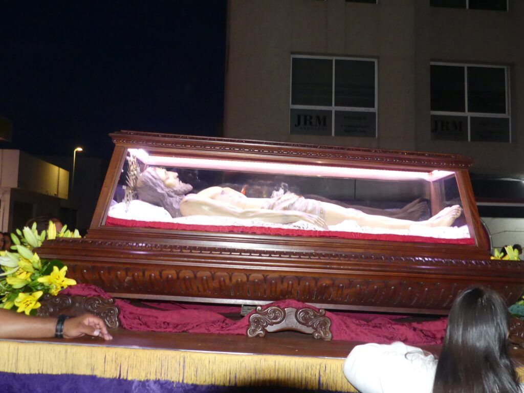 Las imágenes, portadas con solemnidad, avanzaron lentamente por las calles de la capital, envueltas en el sonido tenue de la banda y el silencio respetuoso del público. La iluminación de las velas y el recogimiento general crearon una estampa sobrecogedora, donde el tiempo parecía detenerse.