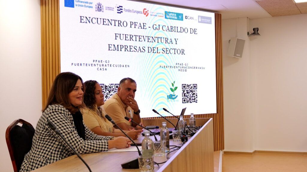 Los alumnos-trabajadores de los PFAE-GJ ‘Fuerteventura te cuida en casa’ y ‘Fuerteventura conserva su medio’ del Cabildo insular participaron hoy en un encuentro con el tejido empresarial majorero, con el objetivo de crear sinergias y seguir favoreciendo la inserción laboral de personas jóvenes en situación de desempleo.