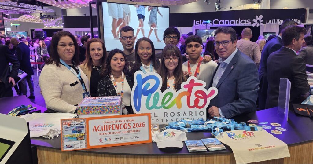 En esta edición, la presencia del municipio ha contado con un valor añadido especialmente significativo: la participación del alumnado del ciclo formativo de Turismo del IES Puerto del Rosario. Esta experiencia supone una oportunidad formativa de gran impacto, al permitirles conocer de primera mano cómo se promocionan los destinos, cómo funciona el sector turístico y cómo se construye el futuro de esta industria estratégica.