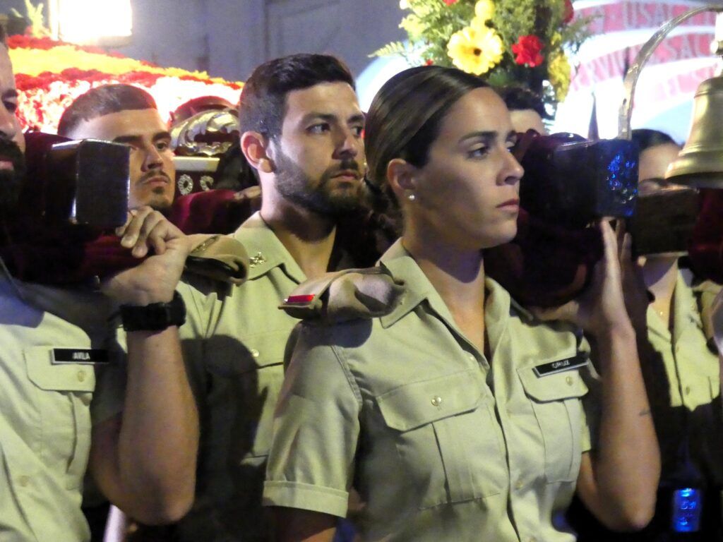 Desde primeras horas de la tarde, el ambiente ya reflejaba la expectación ante uno de los momentos más esperados de estas fechas. Las calles, cuidadosamente preparadas para la ocasión, se llenaron de público que aguardaba con respeto y recogimiento el paso de las imágenes, en una manifestación de fe que año tras año refuerza el vínculo entre tradición y comunidad.
